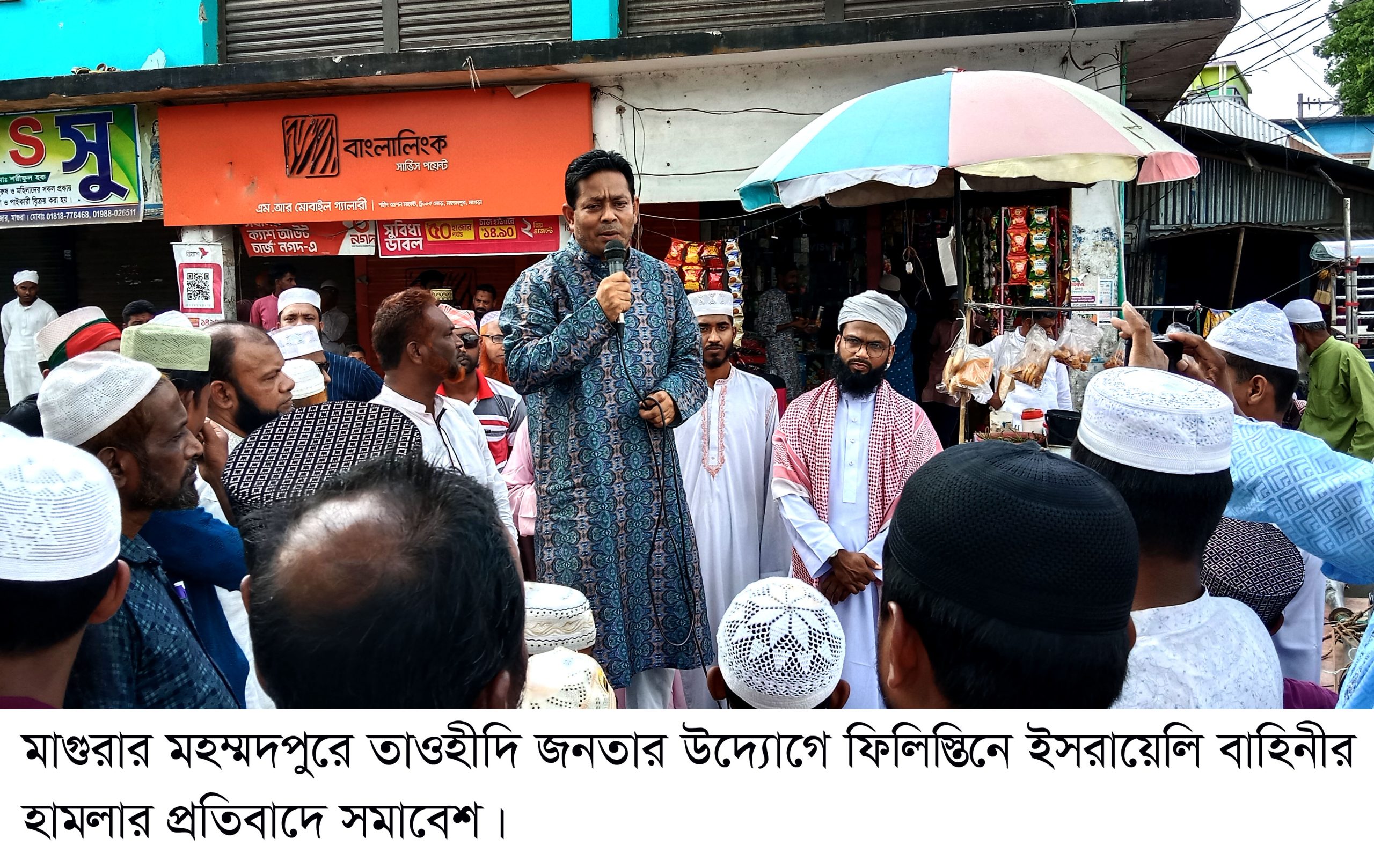 ফিলিস্তিনে ইসরায়েলি বাহিনীর নৃশংস গণহত্যা ও বর্বরোচিত হামলার প্রতিবাদে মাগুরার মহম্মদপুরে বিক্ষোভ মিছিল ও প্রতিবাদ সমাবেশ অনুষ্ঠিত হয়েছে। শুক্রবার (১১ এপ্রিল) জুম্মার নামাজ শেষে তাওহীদি জনতার উদ্যোগে এই বিক্ষোভ মিছিল ও প্রতিবাদ সমাবেশ অনুষ্ঠিত হয়।