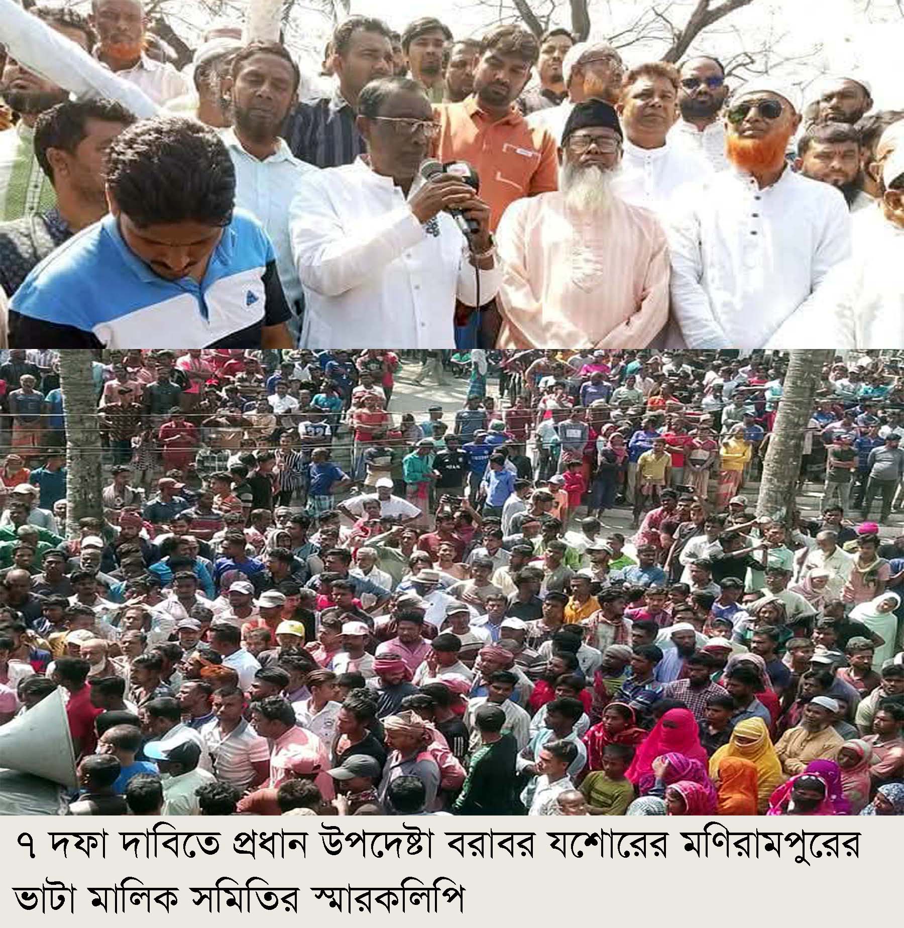 যশোরের মণিরামপুরে প্রশাসনের হয়রানি বন্ধসহ ৭ দফা দাবিতে ইট প্রস্তুতকারী (ভাটা) মালিক সমিতির পক্ষ থেকে উপজেলা নির্বাহী অফিসারের মাধ্যমে প্রধান উপদেষ্টা এবং পরিবেশ বন ও জলবায়ু পরিবর্তন মন্ত্রনালয়ের উপদেষ্টা বরাবর স্মারকলিপি প্রদান করা হয়।